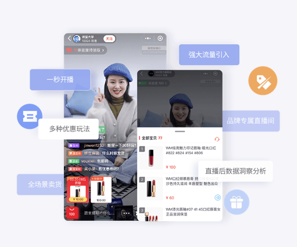 一秒開啟專屬直播間,巨大流量池,強社交屬性,助力商家私域營銷